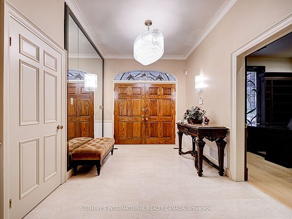Welcome to discover this extraordinary Georgina Revival hallmark. Quietly situated on a private enclave of the prestigious St. Andrew-Windfields neighborhood, this magnificent residence boasts approximately 6,348 sq ft above grade and features five (5) bedrooms, each with a full ensuite upstairs. The expansive central layout announces a formal entrance and graceful symmetry. Tasteful architectural refinements and recent upgrades throughout. An elegant circular stairwell, European oak panelling, splendid mirror walls, hand crafted vanities, and intricate beveled lead designs all mingling to create artistic and sensational aroma for the home. The main kitchen is equipped with a secondary kitchenette, offering a variety of cuisine options. Two sets of appliances plus a freezer in the lower level are all included. A wealth of sash windows and glass entrances, thoughtfully proportioned to provide abundant natural light. L-shape courtyard, lash backyard, and ample side yard provide a high level of privacy and comfort for garden gathering and family relaxation. A spectacular underground multi-purpose sport court and enormous game room is well-loved for year-round recreational activities. Extra large three-car garage, six additional ground parking spaces, and a basketball stand conveniently appointed at the north end of the building. Hot Water Tank owned. Partially furnished. The entire property and furniture presented are included, with the exception of the covered indoor pool wing, which is locked for safety. The location features a perfect proximity to top public and private schools, Granite Club, Sunnybrook Hospital, Hwy 401, golf courses, fine dinings and upscale shoppings. 27 Junewood Cres proudly enhances this exclusive community which is known for its sophisticated executive living and unparalleled social connectivity.