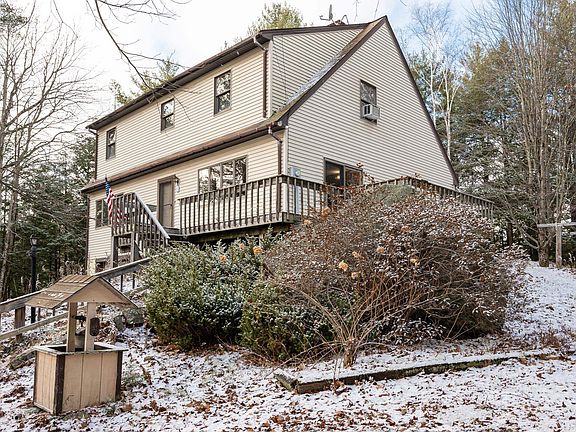 Quality built home on 2.3 acres features an open kitchen and dining area and large living room with hardwood floors with wood stove and sliders to the wrap around deck. There are two bedrooms on the first floor. A primary bedroom and second bedroom and full bath. The second floor features a large bedroom, a small craft room or office and a large 4th bedroom that is unfinished offering lots of opportunities. There are views of Ragged Mt. Close to Route 4 for easy commuting and only 20 minutes to New London.