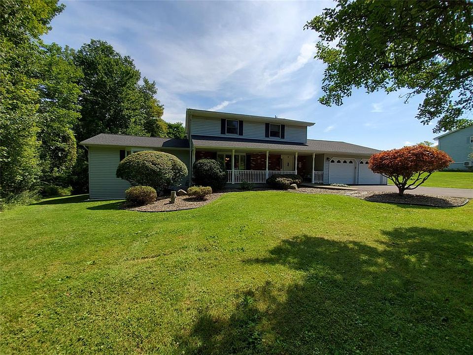 Fabulous Center Hall Colonial on almost an acre! This home has a Chefs dream kitchen with handmade custom maple cabinetry like no other, quartz counter tops, and high end stainless steel appliances, to include a Wolf Steam Oven & 6 burner Thermador range w/oversized oven. The oversized counter depth freezer and refrigerator are an added plus! The large Island has a prep sink and plenty of space for all to enjoy. The amount of storage in this kitchen is evident with the floor to ceiling cabinets.This stunning kitchen is truly a focal point for any gathering. The owners added a 23 x 20 great room off the kitchen with vaulted ceilings and gas fireplace. The first floor also has a large formal dining room, half bath and office or it could also be used as a 4th bedroom. The second floor has the three bedrooms, full bth, w/ the Master having its own full bath. The oversized 3 season room off the kitchen gives you a beautiful view of the in-ground pool. New roof, Furnace, 3 zone A/C.