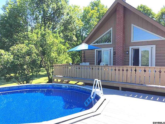 Picturesque country log home. Spacious open floor plan, makes for fun entertaining & gatherings. Eat in kitchen with slate floor. Door to the sun filled deck and above ground pool. Two bedrooms. Two baths. Master bedroom on first floor with master bath. Sunroom off the master bedroom. Large loft room upstairs. Dry basement for extra living space. Two car garage. 4 Acres. A peaceful retreat to call home. Taxes are with no exemptions.