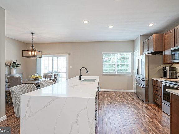 Welcome to this 3-bedroom 2-full bath Townhome in the sought-after Ravenswood at Marlton community. This quaint 49-townhome community is minutes from great shopping, recreation, and restaurants. Entering this 2400 sq. ft. townhome you will be presented with acacia hardwood floors throughout the living area; and waterfall quartz countertops that fall from a 10+ foot center island that is great for entertainment or enjoy a nice meal. In the Kitchen area, you will be surrounded by Cherry Cosmo color cabinetry with a full KitchenAid Stainless Steel appliance package. Working your way up to the 3rd floor you have 3 nicely sized bedrooms with the master bedroom boasting his and her closets and upgraded with the luxury owner’s bath that consists of his and her sink, soaking tub, and stand-up shower. Working your way to the rear of the home you will have a nice deck overlooking the back pond or you can sit on the patio enjoying the fenced yard with your private oasis. The property is a must-see.