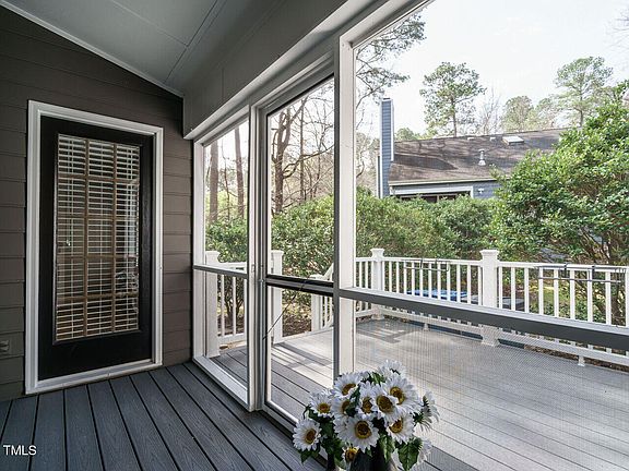 Quintessential Woodcroft! Welcome home to this ONE level, END-unit townhome tucked within the super convenient Seven Oaks neighborhood, in established Woodcroft community! This townhome has the feel of a single family home along with the privacy that is hard to find in townhome living. Enter through the front porch to see the beautiful HARDWOOD flooring the majority of the property. With THREE bedrooms, this townhome is set up for easy living and is filled with bright light and great energy! Enjoy your time on your SCREEN PORCH, that overlooks the TREX deck & private backyard, too! All appliances will convey and the HOA will be replacing the roof, March 2025! Woodcroft offers miles of walking trails, convenient shopping and dining options, too! Easy access to Downtown Durham, Duke & UNC!