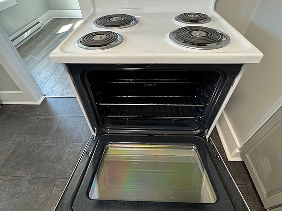Newly renovated top to bottom 2 bedroom with new floors, fresh paint, and replacement windows for energy efficiency. Each bedroom has a large walk-in closet with plenty of room for clothes and light storage. Kitchen is completely remodeled with new cabinets, counters, appliances and lighting. Lots of counter space to prep food on! Kitchen is large but there is also a separate dining room for a larger table. Livingroom is ample size and is the farthest from the 2 bedrooms. Bathroom is all new fixtures as well. Tub/shower combo and washer/dryer hookups. Electric heat zoned by individual room. Tenant pays electric. Large private deck. Large shared yard to enjoy. Off street parking for 2 cars. Plowing and yard maintenance is done by landlord. Your deck is your responsibility for shoveling and salting. Trash and recycling is curbside. No smoking or vaping. No pets. Section 8 considered. Your income must be $4950 a month. Income and employment must be verifiable by paystubs and work references required. No exceptions. First month plus security for move-in. Available now.