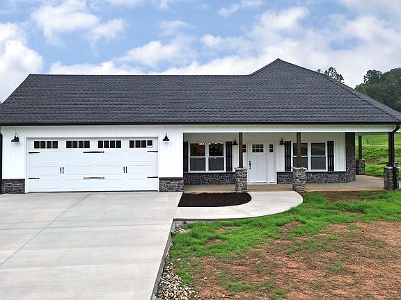 Another amazing home built by Kevin Green Construction! Brand New 3br/2ba ranch-style home with large 2-car attached garage, board & batten vinyl siding, lifetime arch. shingles, beautiful stone work around the base of home and the rock columns on the wrap around porch, back deck, lovely kitchen with attention to detail - custom cabinets, tiled backsplash, leathered-granite c-tops, s.s. appliances, & high end fixtures, walk in pantry, gas log fireplace, durable LVT flooring, lots of windows, shiplap siding on some walls and ceiling with wood beams, office/computer area built in, laundry room, extra $$$ put in the home to upgrade the sound-proofing in the walls, wonderful master bedroom with large walk-in closet, barn-style sliding door to master bathroom with his/her sinks and gorgeous tiled shower, not far from town and Lake Nottely!