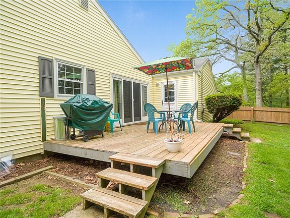 Beautiful, soldly built L shaped ranch in West Kingston. Single floor living including laundry! Great flow with a country kitchen complete with fireplace and extra large large slider to over sized deck. The kitchen has truly made custom cabinets and countertops, made by a local craftsman. There is a large foyer that accesses both the kitchen and oversized living room with a beautiful window with views to the wooded back yard. There is almost an acre of privacy here. And not to forget the dining room which also flows into the living room. There are three good size bedrooms. the master bedroom has two walk in closets and its own bath. There is an additional smaller room which is now a home office but could be whatever your imagination chooses. Hardwood floors throughout and the addition of slate in the foyer and kitchen. The basement is unfinished and dry. You could add an additonal 1600 square feet of living space there. The yard is fenced and shaded with lots of great plantings. There is an overisized storage shed out there too. Don't forget the two car garage with direct access to the mud room and laundry room And to complete it all... central air conditioning and maintenance free vinyl siding in a sunny yellow, and a nice brick facade. Close to URI and train station and south county beaches. Make this your forever home!
