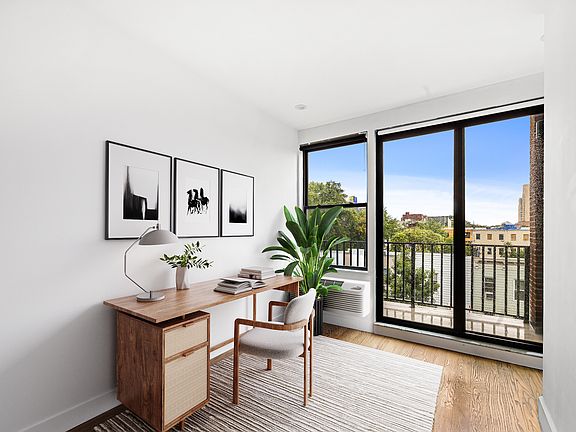 Immediate occupancy available. Step into your new haven at 27 Kossuth Place, Unit 4C! This charming 2-bedroom, 2-bath condo offers a harmonious blend of modern convenience and urban appeal. Imagine savoring your morning coffee on the sun-drenched balcony while gazing at the exquisite city views, thanks to the east-west exposure and excellent natural light pouring through oversized windows. The heart of this home is undoubtedly its open-concept kitchen, ideal space for culinary enthusiasts. With its sleek modern design, center island, stainless steel appliances, and convenient dishwasher, the kitchen is well-suited for preparing gourmet meals or casual dining. The inviting living space is adorned with beautiful hardwood floors that add warmth and elegance to every step and is large enough for a dinning table. Worry less about laundry day with the washer/dryer in-unit setup and available hookups, designed to accommodate all your needs. Stay cool and comfortable with the units efficient cooling options, an absolute necessity during NYC's warm months. Located in a post-war low-rise building, residents have access to the inviting roof deck, presenting a superb opportunity to unwind with friends or enjoy a tranquil evening under the stars. With a pet-friendly policy, your four-legged companions will feel right at home too! Situated within a vibrant neighborhood, you'll find convenient access to various transportation options, open green spaces, and bustling city life just moments away. This condo offers an exceptional choice for those seeking both privacy and the excitement of urban living. Don't miss your chance to experience this delightful space for yourself. Schedule a viewing today and see why this could be your perfect new home! Located on the Border of Bushwick and BedStuy's Stuyvesant Heights neighborhood, you'll have easy access to the J/M at Kosciusko street less than a block away. Enjoy multiple grocer options including the brand new Global Farm Market place. Local Dining options include the Buren, Bklyn Pizza, Sunrise Sunset, and Bonjour Bakery to name a few. Storage Locker available for an additional $50 a month. Fees: 1st Months Rent $3900.00 Security Deposit $3900.00 Credit Check $25.00 per applicant