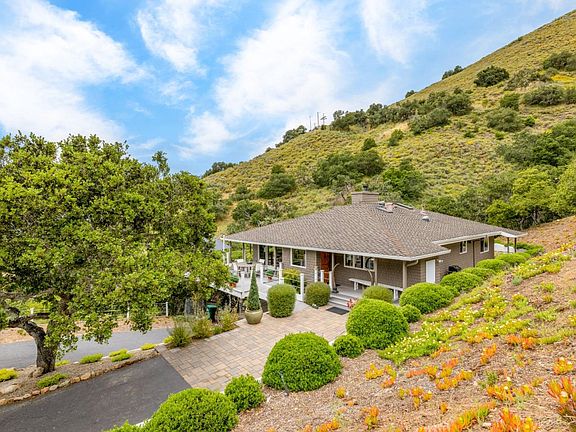 Beautiful home recently remodeled with stunning views of the Santa Lucia mountain range. Enjoy the privacy this home affords with a gated entrance and 10 ac. of natural beauty. Chef's kitchen with high end appliances, primary bedroom suite with access to the wrap around porch and newly landscaped grounds. A generator allows for a continuous power source if there is a halt in electric service. Five bedrooms with a secondary primary suite on the lower level with fireplace round out this charming home.