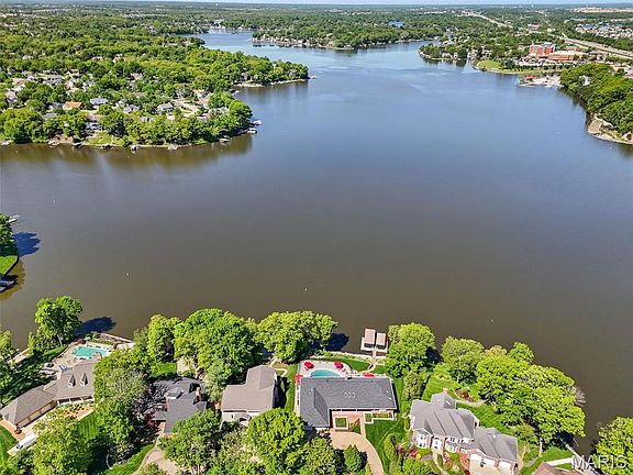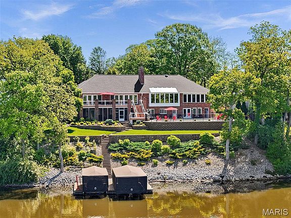 Custom-built by renowned builder Bob Whittaker for his own family, this extraordinary waterfront full brick home offers breathtaking panoramic views of Lake St Louis from nearly every room. Crafted with timeless design & thoughtful detail, it features a heated saltwater pool, screened patio, lighted deck & 2 private boat slips, perfect for lakeside entertaining. Inside, livable luxury awaits with a chef’s kitchen boasting Wolf professional-grade appliances & gorgeous custom cabinetry. Sunken great room w/see-through stone fireplace, 4-season room & an elegant primary suite w/spa-like bath highlight the main level. Invite friends to gather in the spacious walkout lower level rec room w/wet bar. 3-car tandem garage w/heated workshop, zoned HVAC & updated roof. Nearby LSLCA’s resort-style amenities include pools, golf, clubhouse dining, tennis & more. Served by Wentzville (Timberland) schools, this prime location offers an unmatched opportunity for luxury lakefront living. See it today!
