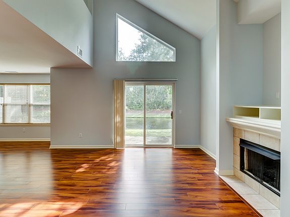 Upon entering this remodeled townhome ones sees the 2 story Great room w/fireplace, sliding glass door to patio and views of the lagoon. The home has been repainted w/newer flooring in the Great room and Dining room and all new carpeting up the open staircase and throughout upstairs. The kitchen has white cabinets and all new stainless steel appliances and overlooks the dining room There is a guest bath off the kitchen and door to the 2 car garage. The newly painted master bedroom and bath are upstairs. The master bath has recently updated walk-in shower, separate tub and 2 sink vanity. There are two guest bedrooms that share a full bath.