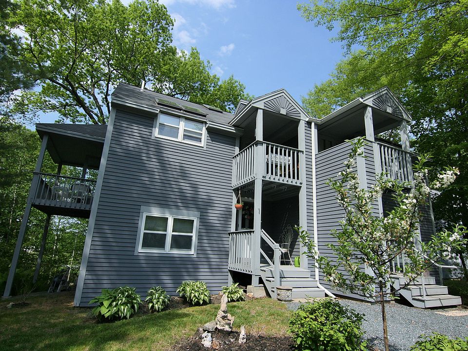 All of the updating has already been done with TLC throughout in this four-level Shaker Landing townhouse. Contemporary architecture with skylights offer nice light-filled spaces. Kitchen with new granite countertops, stainless appliances, oak cabinets and island. Air conditioning system, storm doors and new windows have been added. Roaring brook with natural waterfall just off one of your four covered decks. Maple hardwood floors, carpet and tile. A loft area perfect for home office and a nice roomy basement with storage. Beautiful landscaping. All of the amenities of Lake Mascoma out your doorstep including water sports and fishing with hiking trails just across the street. Easy scenic commute to Lebanon, DHMC and Hanover.