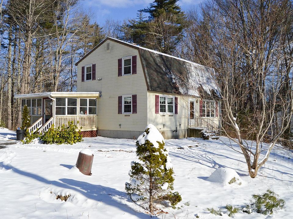 Lots to love in this 4 bedroom, 1.5 bath colonial on a beautiful 2 acre lot. Big kitchen with glass-tile backsplash opens to dining room with maple floor. Bright and light home has first floor bedroom perfect for office or study. Three more bedrooms upstairs including spacious primary with loads of closet space. New carpet. lots of hardwood and tile. Large screened porch for enjoying summer. The basement is mostly finished and ready for fun. Close to Onway Lake. Easy commute to Rte 101. Pending-show for backup.
