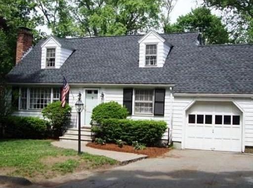 LOCATION! LOCATION! Nice full-shed dormered Cape is nestled at the end of a tranquil, tree-lined street, abutting conservation land. An in-ground pool will be your summer vacation retreat. First floor den can be bedroom #4. Easy access to commuter rail and surrounded by Reading's award winning school district! Features include hardwood floors; fireplace living room; newer furnace, hot water heater, central air, roof. Attached garage. Two sheds provide added value. Your future Reading home!