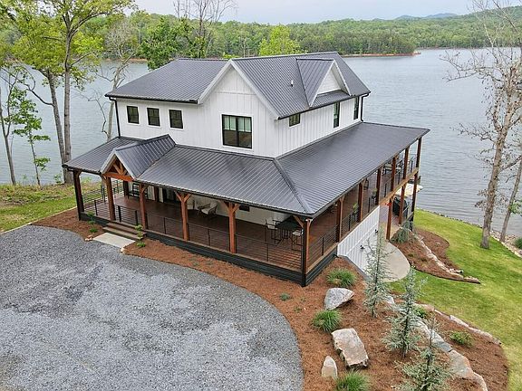 Lovely 5/3.5 MODERN FARMHOUSE, top quality finishes, tasteful design, with STUNNING VIEWS of Lake Nottely and US Forest Service. DEEP YEAR-ROUND WATER. Level, gentle terrain, easy access to lake and dock. Deep porches, attractive landscaping and hardscape, basement rec room and bar, porches, hot tub, large storage area, loft, high ceilings throughout home. Designed and built with thoughtful care for their own family, in hopes of many years of lakeside fun, and now this beauty is available for you!