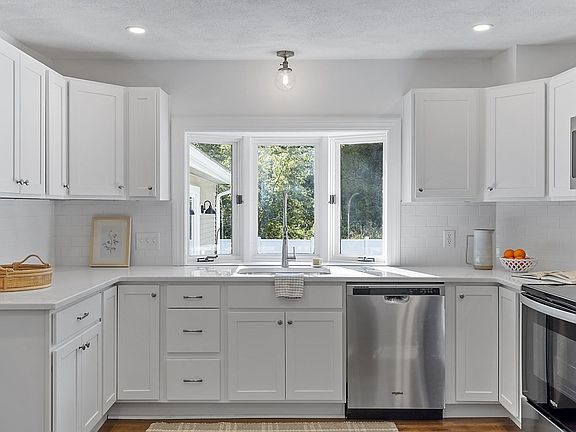 Fall in love with this revitalized Colonial home. On a quiet street in a truly walkable neighborhood just steps away from Maynard’s vibrant town center with local eateries, shops, library, theater, and the rail trail that takes you to the S Acton train station. Extensive renovations include new kitchen and baths with new plumbing, white cabinetry, quartz countertops, new central air, new 200 amp electrical panel, professional landscaping and more. Enjoy the sun-filled eat-in kitchen with bay window. Family room with cathedral ceiling and walls of glass with sliding door to new patio and fenced in backyard perfect for eating outdoors and social gatherings. A traditional entry foyer, open dining/living rooms, and full bath complete the first floor. The second floor offers three spacious bedrooms, and full bath with double vanity, walk-in tiled shower and spacious linen closet. Enjoy sitting on the enclosed front porch with soaring ceiling and woodland views. Don't miss this in-town gem!