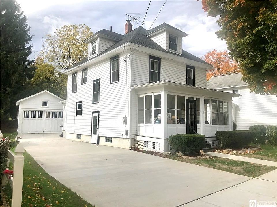 Charming 4 bedroom/1.5 bath home with eat-in kitchen, living/dining combo, hw floors, enclosed front porch, large barn & nice yard! Roof 2008, back porch 1 month! Affordable price and taxes! Convenient location! Beautiful new concrete driveway and side walk just completed!