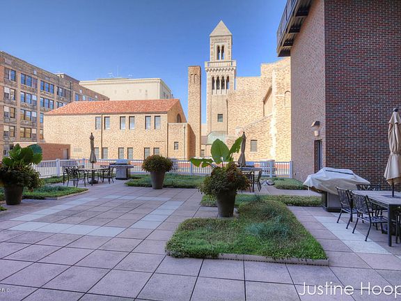 You will first notice the beautiful sun room is a feature that gives a perfect view of the Civic Theater. Downtown living is exciting and abundant in this centralized location. Enjoy awesome restaurants, plenty of breweries, concert halls..anything you can imagine is at your fingertips! You can not hear the noise of the hallway/deck from the living room or noise of the kitchen appliances from the bedroom because of strategic layout! TWO deeded parking spaces that are side by side! Also, your ownstorage space and owners are all welcome to use the community area for entertainment or lounging by the library. Also, enjoy the fitness center and hot tub! HOA fees include: lawn/Yard Care, sewer, Gas to run boilers, snow removal, trash, water and building manager