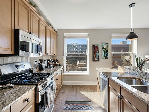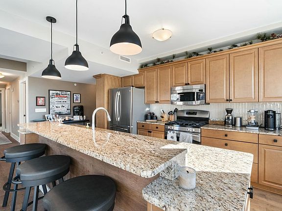 The Fitzgerald at 27 Library Street brings luxury living to the heart of Grand Rapids amid the city's premier eateries, shops, culture and nightlife. Residence 505 is a carefully crafted 2-bedroom, 2-bathroom condo that offers 1,300 square feet of interior space, two balconies, three exposures, and garage parking for two vehicles. The great room enjoys southwestern views of Veterans Park and a custom-designed kitchen with granite countertops and top-of-the-line appliances. The primary bedroom features a large closet and tiled en-suite. The nine-story Fitzgerald building consists of 39 units where residents enjoy a sleek entry lobby, lounge, landscaped rooftop terrace equipped with an outdoor kitchen and gas fireplaces, and private fitness center.