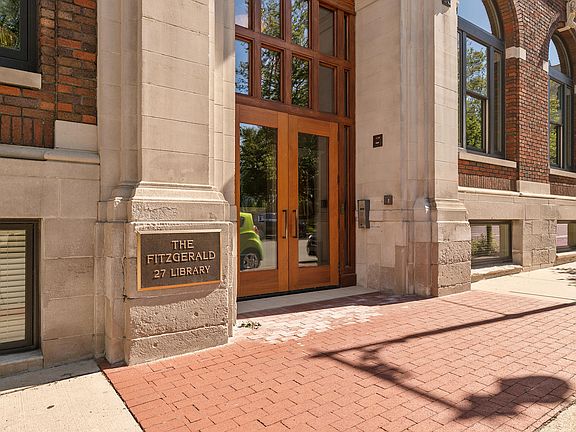 Exquisite 2-bedroom, 2-bath condo located on the 7th floor of The Fitzgerald - conveniently situated in the center of downtown Grand Rapids just steps away from popular restaurants, shops, culture and nightlife. Breathtaking floor-to-ceiling windows showcase the Neo-Romanesque architecture of the historic Fountain Street Church upon entering the great room. The kitchen features brand-new Samsung appliances and granite counters. Primary bedroom suite with tile shower, plus new custom shelving in the closet. A private balcony is the perfect place to enjoy the sunset in the summertime. New Bosch washer & dryer and to two premium indoor parking spaces are included. The nine-story Fitzgerald building consists of 39 units where residents enjoy a sleek entry lobby, lounge with fireplace, landscaped rooftop terrace equipped with an outdoor kitchen and hot tub, and a private fitness center.