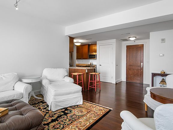 The Fitzgerald at 27 Library Street brings luxury living to the heart of Grand Rapids amid the city's premier eateries, shops, culture and nightlife. Residence 703 is a carefully crafted 1-bedroom, 1-bathroom condo that offers nearly 800 square feet of interior space and garage parking for one vehicle. The great room enjoys southern exposure throughout the day with sweeping views of Veterans Park and a custom-designed kitchen with granite countertops and stainless steel appliances. The primary bedroom features new carpeting and a roomy walk-in closet. The nine-story Fitzgerald building consists of 39 units where residents enjoy a sleek entry lobby, lounge, landscaped rooftop terrace equipped with an outdoor kitchen and gas fireplaces, and private fitness center. Tenant is responsible for electricity and cable.