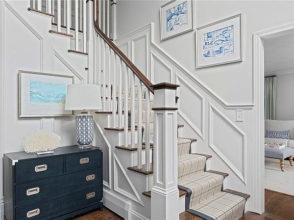 This stunningly beautiful 3 bedroom Colonial in desirable Wickford Highlands has an elegant coastal vibe and is truly move-in-ready! The custom mill work, crown moldings and architectural features are gorgeous! A fabulous home for entertaining with a spacious formal dining room and living room, terrific eat-in-kitchen with granite counters, island seating, stainless appliances, gas cooking, double ovens and built-in pantry. The family room features a lovely gas fireplace with tile surround, custom shelving and cabinetry, all new windows and lighting and a lovely view of the backyard. The first floor office is filled with light and has glass French doors that lead to the kitchen. The powder room and separate laundry room complete the first floor. The primary suite has lovely crown molding and offers two walk-in closets and the primary bath features a new double sink granite vanity, new lighting, mirror, tile floor and shower/tub with glass doors. The two secondary bedrooms share the updated family bath. The lower level is a perfect exercise space or playroom with an abundance of storage. The custom designed stone patio, walls and built-in grill are a lovely spot to entertain and enjoy the outdoors. So many enhancements in the last few years...Central Air, whole house generator, new landscaping and lighting, blue stone front steps, new driveway with cobblestones, new roof and garage doors, all hardwood floors refinished and freshly painted interior. A magazine worthy home!