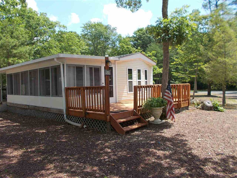 NESTLED AMONG THE TREES THIS HOME OFFERS LOTS OF PRIVACY. YOU OWN THE HOME AND THE LAND, NO MORE LOT RENT! DENNISVILLE LAKE RESORT OFFERS YOU A GATED COMMUNITY AND A HOME AT THE JERSEY SHORE. YOU AND YOUR FAMILY WILL ENJOY YOUR SUMMERS OR WEEKEND RETREATS HERE WITH A CLUB HOUSE, POOL, PLAYGROUND AND BEST OF ALL A LAKE!! BRING YOUR CANOE, KAYAC OR SMALL BOAT AND ENJOY FISHING AT ITS BEST! NEW BATH HOUSE, LAUNDRY AND REST ROOMS ADD TO THE GREAT AMENITIES OFFERED HERE. STEP UP ON A LARGE FRONT PORCH AND INTO AN OPEN FL ROOM WITH LOTS OF WINDOWS, INTO A BRIGHT DINING AREA WITH NEW MODERN WINDOWS TO ENJOY THE WOODED LOT. A KITCHEN OFFERING FULL SIZE APPLIANCES AND ROOM TO ENJOY FAMILY MEALS. THE BEDROOM IN THE BACK OFFERING LOTS OF STORAGE AND A DOOR LEADING OUT ONTO A PRIVATE BACK PORCH. THE BATHROOM OFFERS A FULL SIZE TUB AND SHOWER. THIS HOME INCLUDES HEAT AND A SEPERATE A/C UNIT IN THE FL ROOM. AN OUTSIDE SHED FOR ALL THE BEACH STUFF! YOUR FRIENDS AND PETS ARE WELCOME HERE. YOU WILL LOVE YOUR HOME AWAY FROM HOME. CALL TODAY TO SEE!