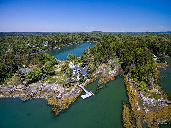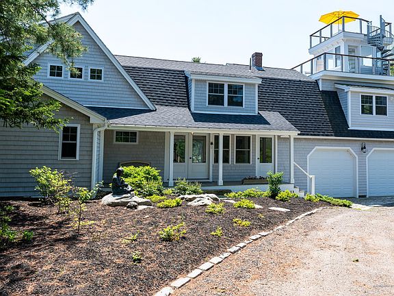 ''Crows Nest'' in Harpswell offers the very best of coastal Maine living. This Classic Maine home boasts an intimate waterfront setting where the ocean views from within are effortless and expansive from virtually every room. The grounds feature a small, well maintained yard with native stone walls and walkways welcoming you as you enter the home. There is expansive outdoor space, a generous south facing deck leading from the living room takes you directly to the private dock with power & water at the float, or from the ''crows nest'', enjoy dramatic 360 degree elevated vistas and eye level viewing of the numerous osprey and eagles that frequent Little Crow Point. Finally, a granite stone path leads to a gazebo with seating for 5 ....all focused on the sun and the sea. Inside, custom features include cherry flooring in kitchen and living rooms, heated tile in the ''greeting room'', a home theater room, home gym, and a third floor enclosed ''widows walk'' (a perfect place to take in the sunset). You'll appreciate an air conditioned first floor master with a glorious tiled bath. Thoughtful design delivers a living (with natural stone fireplace), kitchen (granite & stainless), and dining room that compliment each other and are perfect for entertaining. A large separate ''greeting room'' highlights the view and can be a bit of a sanctuary or retreat. Upstairs you'll find 2 spacious bedrooms, 2 bathrooms, a media/theater space (this space has huge open ocean views), and a home gym. There's plenty of room for watercraft (or your ''island cruiser'') too, with a 2 car garage and a recently completed single bay storage garage. Boaters will benefit from a mooring site with 10+/- feet of depth. The major systems are in excellent order with a whole house generator and new furnace. A very unique, distinctive, and rare offering. 2021-06-18