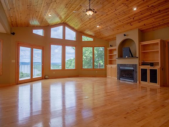 Great open floor plan. Features include lots of windows for plenty of natural light & a panoramic view of Table Rock Lake from almost every room, 2 living areas, kitchen pantry (8.8 X 4.3), 2 master suites (his & hers closets in upper level master bath), 2 fireplaces, granite counter tops, sun room, 2nd kitchen, maple hardwood floors, vaulted pine ceilings, chemical free Ozonater hot tub, 2 wraparound, composite rear decks, RV parking w/electric and a 16 X 16 storage shed. There's also a 30 X 40 workshop! Workshop is climate controlled, has a concrete floor, 10 ft. ceiling, 10 X 8 door and carport. Back of property abuts Lancelot Lane so you can take a Gator, or hike, right down to a beach cove for a relaxing swim or float.