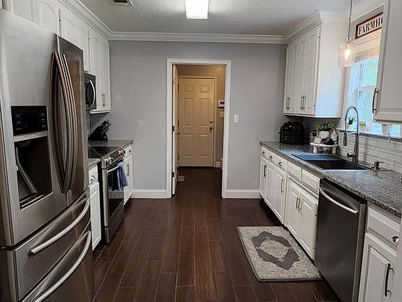 Very appealing home in Banks Lake Pointe on 1.28 acres. 3 Bed 2 Bath home with many upgrades - new wood-look ceramic tile in living area, carpet only in bedrooms. Upgraded baths with new fixtures, new tiled shower in master bathroom, granite countertops in kitchen and new appliances only 2 years old! Screened in porch on rear with view of the woods. NO back-door neighbor!