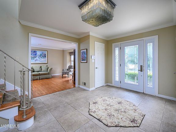 Nestled in the heart of Manalapan, in desirable Tepehemus Estates sits this beautifully spacious 5 bd., 3.5 bath Lexington Model. Ready for new owners, the main level features updated EI kitchen w/center isle, expanded family rm. w/ cozy WB fireplace & vaulted ceiling w/ skylights. Ceiling fans, recessed lighting & HW floors thru-out. Whole house fan. Tiled airy foyer w/dbl. closets leading to large D.R. w/crown & chair molding & ample L.R. w/crown molding too. 5th Bdrm. on main floor, full bath w/laundry closet & access to deck & pool. Upstairs Primary bdrm. w/updated ensuite, double sinks, frameless shower, WI closet & terrific flex room! With 3 more spacious bedrms. & tiled main bath, the 2nd floor is perfect for accommodating family & guests very comfortably.  Sunroom offers a bright & airy space to relax overlooking the lovely backyard which includes wood deck, paver patio & newly fenced inground heated pool, ideal for summer fun, entertaining & relaxation! Newer liner, pump & heater with equipment shed for pool to keep things neat. Full, partially finished basement w/newer carpet (7/24) provides additional space for recreation, hobbies & storage. Featuring recessed lights & convenient 1/2 bath. Workbench and built-in shelves are included. The 2-car garage completes the picture! Located near excellent shopping, terrific restaurants, schools & easy commute to NYC for the perfect blend of suburban tranquility w/urban convenience.