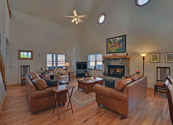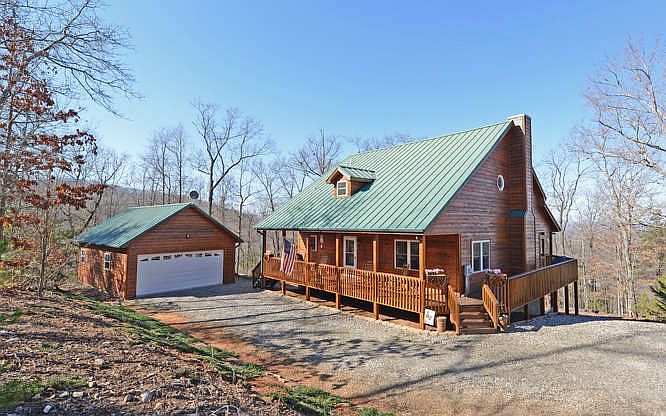 Mountain home that is more than just a cabin. Located within three miles of Blairsville. Three bedrooms, three full baths, wrap around porches and screened porch on main level. Deck on the terrace level. Large great room, dining area, and kitchen. Cathedral ceilings. Beautiful hardwood floors. Large loft area for third bedroom with bath. Finished basement. Lots of storage space. Pantry. Stone Fireplace. Home is in excellent condition. Detached garage. Beautiful seasonal mountain view. Convenient to Lake Nottely and Lake Chatuge. Nice!