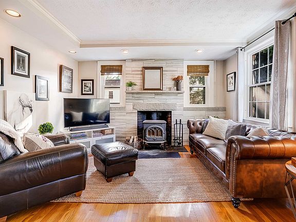 This tastefully updated custom ranch-style home located just outside Amherst Village offers single-level living with an expanded upstairs primary suite and office. On the main level, beautiful hardwood floors lead to a spacious kitchen with pretty shaker cabinets and newer stainless steel appliances flowing easily into the bright dining area with a view of the deck and pool out back. Cozy up around the Jotul® wood stove in the welcoming living room or read a book in the study nook. Continue to the private hallway servicing 2 well-sized bedrooms and an updated bathroom complete with tub and tile surround. The 2nd floor is home to a sunny and expansive primary suite w/hardwood floors, walk-in closet and stunning bathroom with glass block shower and a large jetted tub with view of the back woods and pool from the picture window! This level also offers a large space for an office and sitting area or studio along with door to an unfinished area for storage or potential expansion. Outside, a large deck overlooks the fully fenced back yard with in-ground pool and large patio area, perfect for relaxing or entertaining. Don't miss the oversized insulated garage with heat and a/c, currently used as a studio/man-cave! Enjoy peace of mind with newer roof & windows, 5 minisplits along with a new hot water heater and new driveway. Walk to the Village, enjoy the highly rated schools, easy shopping and commuting--just 4min to Rt 101, 8min to 101A and 22min to airport. This is the One!