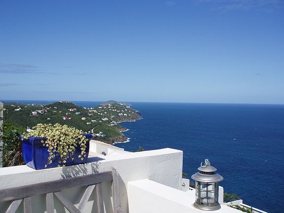 Upper level two bedroom, two bathroom condominium in the Mahogany Run golf course community with panoramic ocean views of both the US and British Virgin Islands. The unit features dual master suites, one of which has its private deck. Stand alone building insures privacy and a short walk to the Sanderling pool. Split air conditioning, high speed internet, satellite TV, 2 decks with ocean views, and a washer and dryer. Central location provides easy access to town and east end. A short five minute drive brings you to famous Magens Bay Beach, ranked one of the top ten most beautiful beaches in the world. This is a secure gated community featuring designated parking under the condo. The unit has a great rental history.