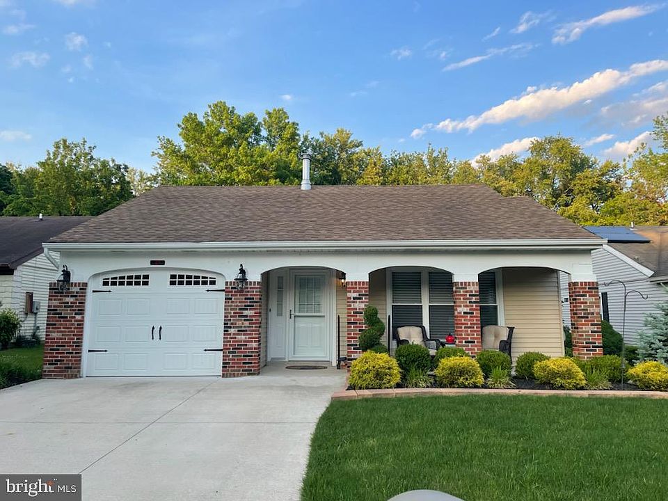 Welcome to this impeccably maintained 2 bedroom, 2 full bath Rancher in the desirable 55+ community of Leisuretowne. Nothing to do, everything has been done for you. This home features newer updated kitchen and bathrooms. Kitchen upgrades include 42" off-white cabinetry, granite countertops,, glass subway backsplash, stainless steel appliances, French-door refrigerator, garbage disposal and center island. Bathroom upgrades include double bowl vanities and granite countertops, porcelain title floors, Nutone exhaust fans, New lighting fixtures, double walk-in shower in master bath, white high gloss porcelain enamel steel bathtub in main bath and glacier bay high-efficiency dual flush toilets. The 1 car garage has insulated drywall and garage door. Additional upgrades include 200 amp electric service, heat pump, double pane windows, Jotul wood burning stove, blown-in insulation/whole house sealant (attic), Hydrawise irrigation system, engineered hardwood floors throughout LR, DR, Kitchen an FR, and upgraded lighting fixtures throughout. Also curb appeal is spectacular with professional landscaping, front porch and large stamped concrete rear patio with white vinyl railings.