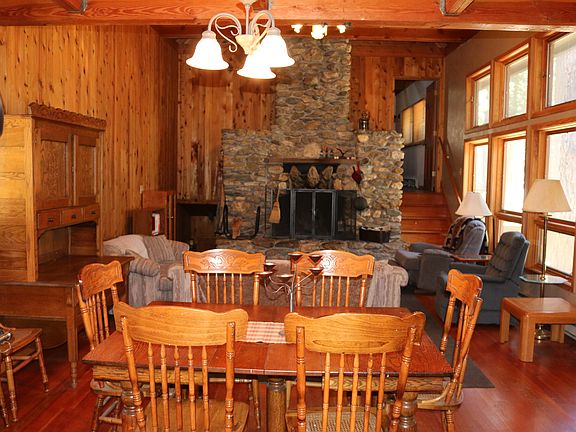 Graeagle mountain home for rent. Open great room with open beam wood ceiling. Wood flooring throughout. River rock fireplace. Front deck overlooks property with greenbelt view. Street is maintained by Plumas County road dept. Walking distance to downtown and mill pond. Home comes furnished. Small pets ok. 12 month lease preferred or longer. Tenant pays water, power, internet etc. Road is maintained by Plumas Co. Tenant clears driveway, deck, walkway and parking areas.