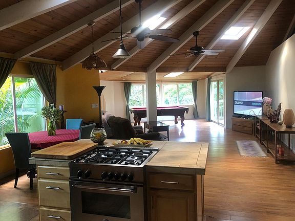Upcountry Clean spacious 1300 sq. ft. Partial furnished home has 2br. x 2 Bath full Kitchen has gas stove with convection oven. Home has All wood flooring throughout and tile flooring in x 2 bath rooms one bath has spacious walk in shower other with Over size soaking tub, Open beam ceiling x 5 ceiling fans, lots of windows, x 5 sky lights, Laundry room washer & dryer ,Out door space 350 sq. ft. lanai with partial roof, Front entrance has 150 sq. ft covered lanai. enclosed storage room under home. lots of citrus trees, fenced garden area with timed watering system. (Lot's of plants and fruit trees Must be a plant lover) Off street parking. property is fenced and private, Includes All utilities, Propane , high speed Internet, water, trash, sewer ( No Smoking , No Pets ) Not Hud Approved