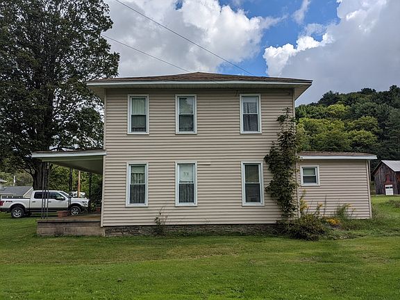 Older home on large lot (1/2 acre) nice views of the valley and mountians out your back door. This home is being sold, "AS IS IN ITS CURRENT STATE" This would make a great home or camp. Newer windows installed, forced air unit & 1 ventless heater heats this home. Rooms are nice sized with downstairs featuring - Front parlor/den, living room, dining room, kichen, 3/4 bath (tub no shower), storage & crawl space under the stairs) Basement access through bathroom and has seperate laundry room. UPstairs has large foyer at top of stairs and 4 bedrooms. Scuttle door for Attic. Large barn and shed for storage of your outdoor toys or excess. Lot extends to corn field out back. Home has defects, cash buyer only.