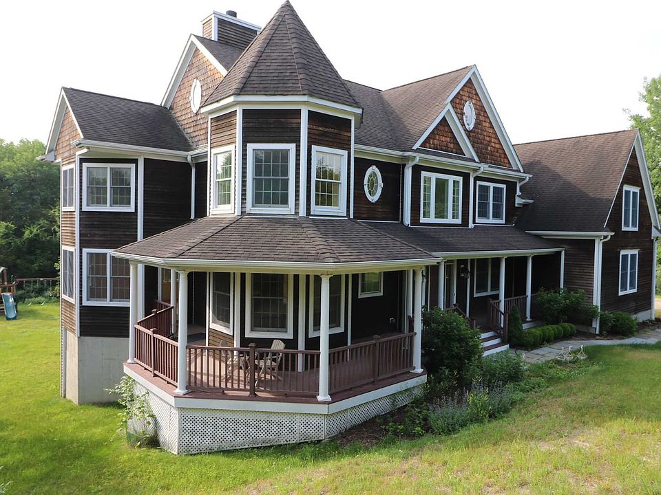 Charming young Colonial w Victorian flare on Ultra Private 5 Acre lot w panoramic views in Cushman Farms Estates. 5 BR-3.5 baths, octagonal LR shares double sided Duvet wood fireplace w beautiful FR. Extreme privacy and views yet minutes to Metro-North, Westchester & Newburgh airports, and I-684/I-84. MBR suite W sitting room & views w incredible master bath. Huge sun filled walkout basement w 9ft + ceiling suitable for FR- Media Room setup. Tiled radiant heat flooring, cedar siding, TREX decking, huge 3 car garage, top appliances, plus more. Deed restricted subdivision.Huge 22x30 trex deck. Room for pool. Adjacent lot available for build to suit or purchase. Priced well below replacement cost. 25 kw whole house generator. plus much more.
