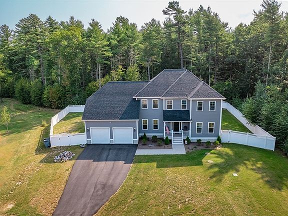 This stunning Colonial, 1 year old, sits on over an acre at the end of a cul-de-sac. Inside, you'll find an open concept living area filled with natural light and a fireplace. The modern kitchen is a chef's dream, with stainless appliances, granite countertops, and a large island that doubles as a breakfast bar. Ample cabinet space and walk-in pantry provide practicality and style. An office, formal dining room, 1/2 bath and mud room area complete the 1st floor. The 2nd floor has a oversized primary bedroom w/ ensuite bath, two closets and an additional office/reading room. There are 3 additional bedrooms upstairs with large closets, a laundry room and a second full bath. The unfinished basement has high ceilings and offers plenty of additional storage options. The fully fenced in backyard abuts conservation land that can't be built on, offering an abundance of privacy. With over 3500 sq. ft. of living space, 2 car garage, a whole house generator & plenty of upgrades, this won't last!