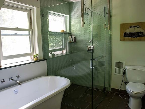More pictures on www.madebyfred.com/27marvin Well-built 1921 3 bedroom, 1 bath bungalow on very quiet street in College Hill neighborhood, with an idyllic, private backyard full of trees, shrubs, flowers, and birds. Extensively remodeled. Kitchen has all new appliances, flooring, stainless steel apron sink, and gorgeous custom white concrete counter-tops and backsplash. Original wood flooring throughout the house, recently stained. Huge bay window in dining room overlooks mature perennial gardens out back. Upstairs bedrooms and bathroom recently gut renovated from floor to ceiling with new insulation and sheetrock. Custom Elfa storage system in master bedroom closet. Spacious bathroom has infinity shower, freestanding Victoria + Albert soaking tub, wall-mounted double faucet Duravit washbasin, and Italian porcelain tile floors. Expansive front porch overlooks perennial and vegetable gardens, and charming back deck is surrounded by peonies and perfect for watching wildlife in the woods that surround the back yard. 2 car garage. New efficient propane furnace, roof, and attic insulation, and all windows were recently replaced.