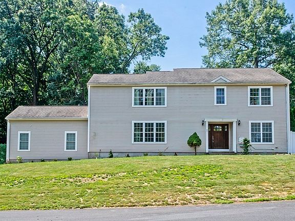 Recently renovated in 2017 this modest colonial in a quiet neighborhood is move-in ready. Cathedral ceiling foyer highlights hardwood staircase and second floor landing. Large kitchen with updated appliances including black stainless refrigerator and dishwasher with wrap around breakfast bar flows seamlessly to 1/2 bath, garage entrance and sunlit breezeway leading to backyard. Family room with fireplace offers various design options running along back of house while dining area provides ample space to accommodate family and guests. Upstairs you'll find 3 moderately sized, carpeted bedrooms and two full baths. Finished basement is perfect for additional living space, gym or home office and also houses a second full bath with laundry area. Entire first floor has been freshly painted with additional features such as ceiling fans with overhead lighting, wall sconces, kitchen backsplash and pendant lights. Fenced in backyard with retaining wall creates a private, spacious landscape.