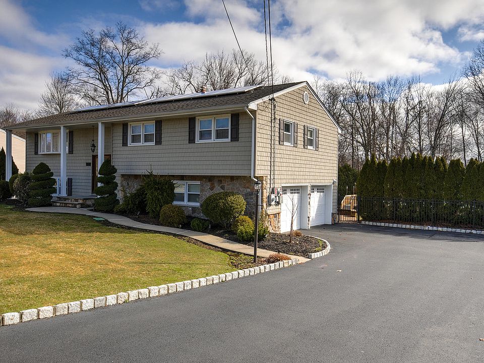 ***Move right in to the totally updated Bi-Level Home! Hardwood floors throughout, stainless Steel appliances, granite countertops, custom cabinetry and more. Vacation at home with above ground pool with Trex deck, hot tub, paver patio, fire pit, in ground sprinkler system, and outdoor storage. Formal living and dining room, 5 bedrooms and 3 full baths. Kitchen opens to Great Room with vaulted ceilings and w/o to patio. Huge family room, 5th bedroom, full bath and office on ground level (possible in-law suite.) Buyer will assume contract for Solar Panels and Slomin's Security System.