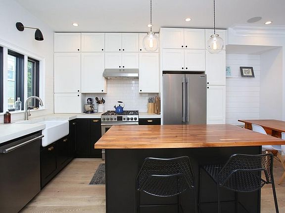 This custom renovated 3+ bed single family stands apart from the rest, is filled wi/high-end finishes, many upgrades & has a private yard! Attention to detail is apparent throughout. 10 ft ceilings, 2 piece crown molding, wide plank flooring & abundant natural light. Well designed kitchen w/white & black cabinetry, antique brass hardware, concrete mitered counters a Rohl farm sink, Frigidaire prof. series 6 burner gas range & freestanding island w/butcher block counters. Glass inlayed door walks out to private yard Spacious living w/gas fireplace w/custom shiplap mantle flanked by built-ins. Stunning master suite w/huge custom walk through closet, master bath w/cement tile, dble vanity & frameless glass shower. Add. bonus room ideal office & nursery. 2 large beds w/deep closets & built-in desks, guest bath w/grey tile accent. Newly finished basement is the ideal den/playroom w/access to the private yard w/french drain. A home that you can grow into with every amenity!