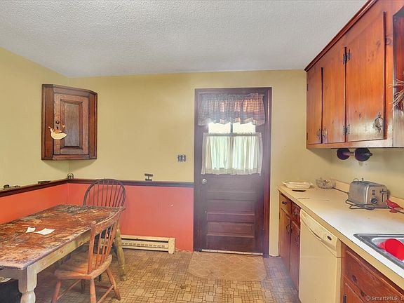 Fixer-Upper with Endless Potential - 27 Meadow Rd, Burlington, CT. The upstairs offers the opportunity to add a second bathroom and two additional bedrooms, while the main floor features two bedrooms-one of which could be converted into a dining room for a more open layout. The kitchen and living room are ready for modern updates, and the basement, once finished with a fireplace, needs restoration but has a walk-out slider to the backyard. The gently sloping backyard leads to a beautiful stream, adding to the property's charm. Property sold as-is.