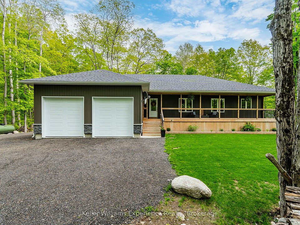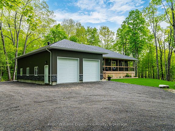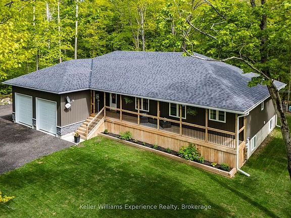 Tucked away on a serene, 1.4 acre wooded lot with private trails, this custom built 3+2 bedroom, 3 bathroom home offers the perfect blend of luxury, comfort, and nature. Built in 2019, the open concept design features a bright, high-end kitchen with vaulted ceilings and seamless flow into the dining and living areas. Step out from the dining room or the primary suite onto a spacious back deck that overlooks your peaceful, tree-lined backyard. The primary bedroom offers an ensuite, a walk-in closet, and direct access to the deckyour own private escape. Beautiful oak hardwood floors run throughout the main level, with durable luxury vinyl flooring on the lower level. The fully finished walkout basement with in-floor heating opens to a lower deck and backyard area, ideal for entertaining or simply enjoying the tranquility of the surrounding nature. A heated, oversized double car garage (over 950sqft) includes a storage loft and additional access from the rear garage door. Come experience the privacy, space, and beauty this home has to offer!