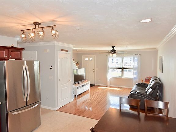 Welcome to The Village at Merrimac Landing. This condo offers 2 beds with 1.5 baths. Walk into open concept living with living room, dining area and kitchen. The living room & stairs have updated hardwood floors, completed in 2016. The kitchen and dining area are spacious and bright. The kitchen has a garbage disposal, tile flooring, granite counters and stainless steel appliances/new dishwasher. The 2 bedrooms and the full bath are upstairs. Bedroom floors are carpeted. The basement offers a ton of extra space for storage. The basement has the washer and dryer hookups. There is central AC for the upcoming Summer months! The AC unit is new. There are 2 deeded parking spots in front of the unit with a visitor spot. Pets allowed. Easy Access to Routes 495 and 3. This condo is turn-key!