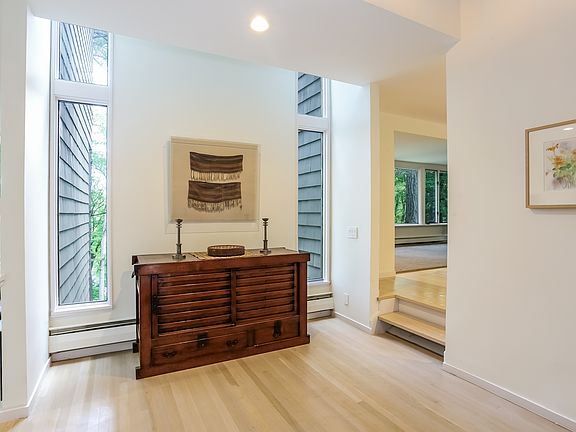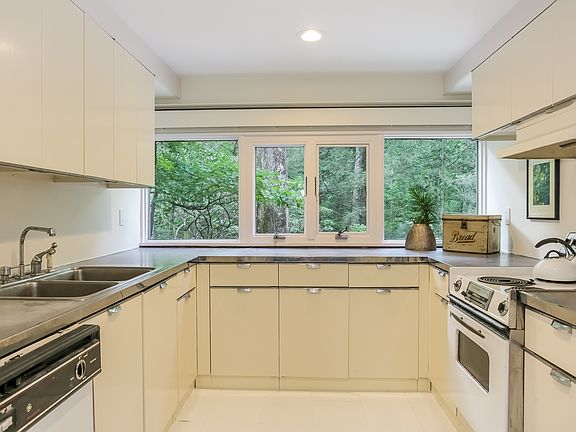 Less than one hour from New York City, this serene contemporary retreat is nestled in a verdant landscape with beautiful views over Cobamong Lake. The three bedroom, two full and one half bath house was designed by Chia-Ming Sze for a founder of the World Health Organization. Built on Feng Shui principles, the house is situated on 7+ totally private acres surrounded by an enclave of multimillion dollar properties. The open interior flow of light and space, combined with the sprawling exterior mahogany deck, offers a mindful and relaxing setting. Expansive windows unite the indoor and outdoor environments seamlessly, creating an atmosphere of harmony and peacefulness. A truly unique opportunity.