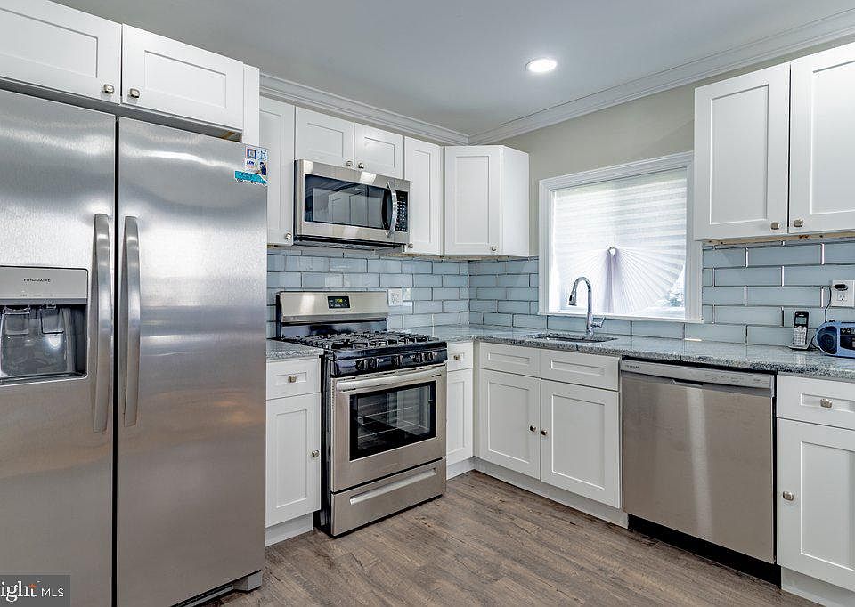 Introducing this immaculate home that has been recently upgraded! This charming Cape Style home boasts 3 spacious bedrooms, 2 full bathrooms, and a plethora of stunning features. The kitchen has been fully updated with all-new cabinetry, brand new stainless steel appliances, including a 4-piece set, complemented by an elegant tile backsplash and granite countertops. Both bathrooms have been remodeled with brand new appliances, fixtures, custom tiles, updated lighting, and a new vanity. You'll appreciate the touch of class added to the living room with its crown molding and beautiful shadow box wood trim package. The first floor master bedroom also offers additional space for an office or nursery. Additionally, the home has updated recess lighting, new interior doors and trim, new flooring throughout, and a large fenced backyard that includes a large shed for additional storage. This is truly a unique opportunity to own a home with too many upgrades to mention!