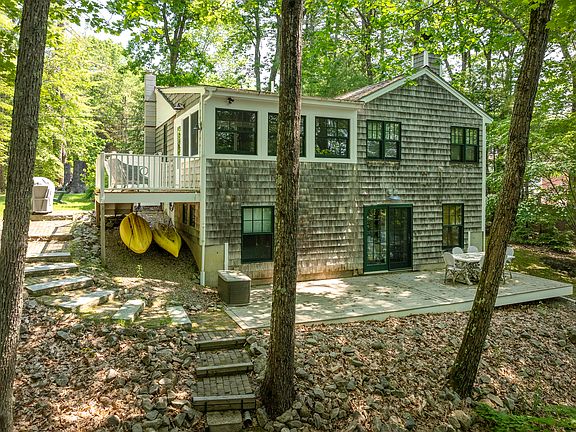 This beautifully appointed, year-round lakefront getaway with over 1800 sq. ft. of living space offers the perfect escape in every season. Set on the peaceful shores of Estes Lake, this like-new home provides a wonderful sense of privacy while offering endless opportunities for boating, swimming, and fishing right from the 15' x 20' T-shaped dock in your own backyard. Inside, you are greeted by soapstone and cherry countertops, hardwood floors and a custom-built, helix wood staircase to the downstairs family room. On the first floor, the fireplaced living room offers stunning lake views and opens to a bright, glassed-in porch—ideal for relaxing mornings or cozy evenings. With a total of four bedrooms, this home is designed to comfortably host family and friends. Two bedrooms are conveniently located on the main floor, while two more, tucked off the lower-level family room, offer a private retreat for guests or extended family. Whether you're looking for a peaceful vacation home or a full-time residence that brings the beauty of lakeside living to your everyday life, this hidden gem on Estes Lake is ready to impress, and it is conveniently located within 20 mins of the Rte. 95 in Wells, and within a short drive to the Maine coast's beaches in Kennebunk, Wells, or Biddeford.