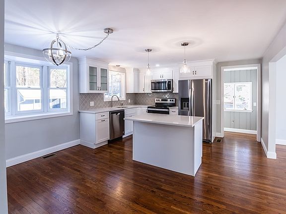 WELCOME HOME!!! TOTALLY REMODELED cape located on a cul de sac. Sparkling DESIGNER kitchen with BRAND NEW STAINLESS STEEL APPLIANCES, QUARTZ COUNTERS, TILED BACKSPLASH, NEW CABINETS, ISLAND. Opens to spacious sun splashed living room with beautiful mantled fireplace with GLEAMING HARDWOODS perfect for entertaining. Two generous sized bedrooms and a full UPDATED BATH. Upstairs are two more bedrooms with closets GALORE and NEW CARPET. Stunning bathroom with custom tile and glass shower. When entering through the back door you'll find a super functional MUD ROOM to organize your boots and coats. NEW WATER TANK, NEW UPDATED ELECTRICAL PANEL, NEWER WINDOWS NEW CENTRAL AIR SYSTEM, NEW 4 BEDROOM SEPTIC SYSTEM. Nice sized back yard with STORAGE SHED perfect for cookouts and outdoor entertaining. Minutes to Canton or Stoughton commuter rail and up the street from all your shopping needs make this gem a must have!