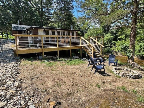 Old Camp Miramichee Cabin and 4 Creek Frontage Lots - This 577 square foot cabin is an original from girls Camp Miramichee days. The cabin has been renovated Inside, and outside with a beautiful new deck. Features include living/dining room with wood burning stove, nice kitchen, bedroom, full bath and original Flagstone flooring. Cabin is being sold furnished and is a good seasonal rental. Across the road are 4 creek frontage lots include with the cabin for an additional 3 m/l acres of land. The cabin and the 4 lots sit next to a creek that flows into the South Fork of the Spring River.
